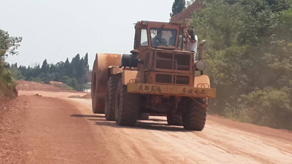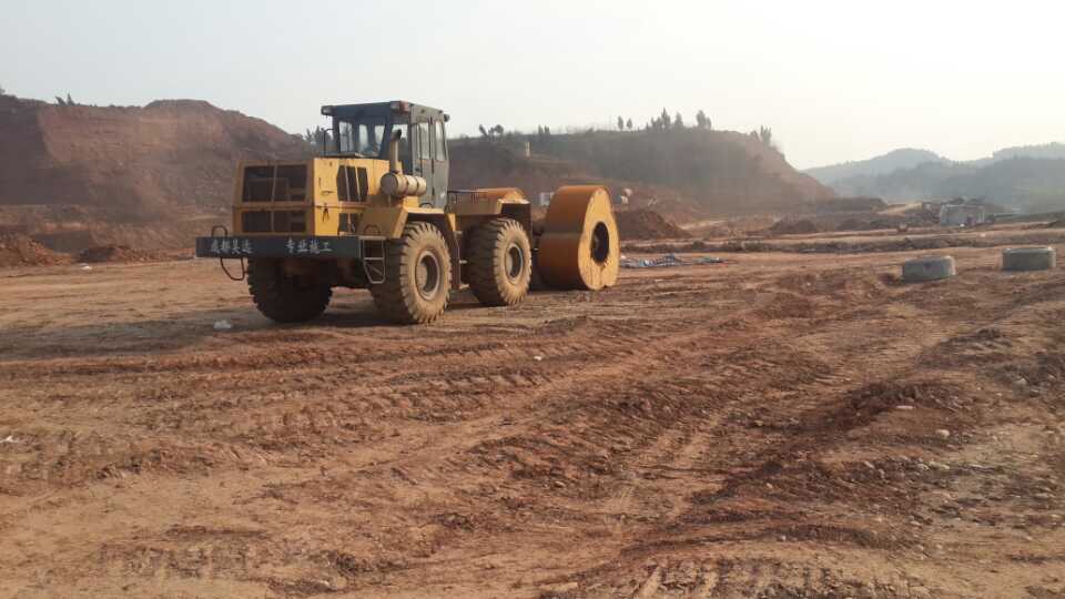 沖擊碾壓機(jī)正在遂廣高速公路施工現(xiàn)場