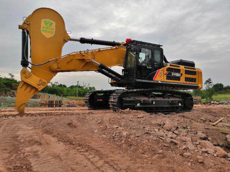 1、鉤機(jī):又名勾勾機(jī)、巖石松土機(jī),是一種在大型挖掘機(jī)的基礎(chǔ)上改裝的巖石破除設(shè)備,主要適用于堅(jiān)硬巖石、次堅(jiān)石破除施工工地,針對(duì)于一般挖掘機(jī)鉤不動(dòng),而工地現(xiàn)場(chǎng)又不允許放炮的工程。是一種集前進(jìn)、后退、旋轉(zhuǎn)、舉升、下降、挖掘、液壓錘破、吸附等功能于一身的一種機(jī)械,是用錘頭挖掘高于或低于承機(jī)面復(fù)的物料的土方機(jī)械。